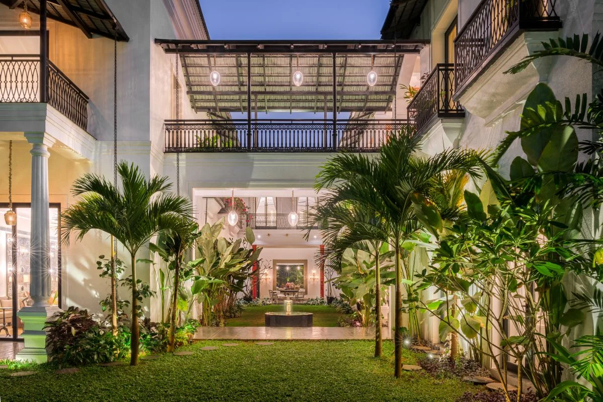 In the sleepy village of Saligao, The Asavilas fuses the stately elegance of French Colonial architecture with the vibrant, layered richness of Indian maximalism, creating a truly lavish vacation estate.